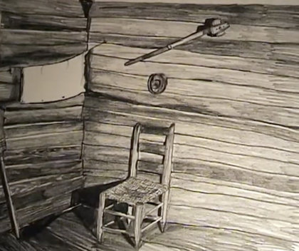 Lucy Raven (American, b. 1977), When the Ceiling Has Become Visible (still), 2004-5. Animated video, 2:58 min. Gift of Driek (OC 1965) and Michael (OC 1964) Zirinsky, 2023.1.92A-G.